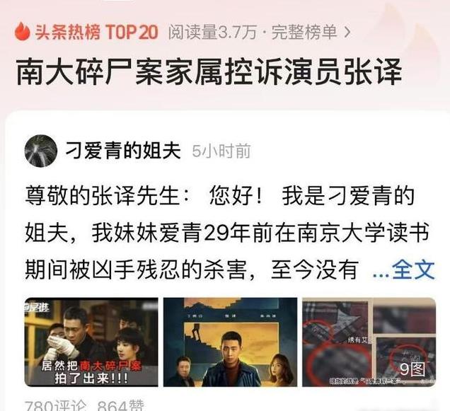 近期,演员张译主演的电视剧《他是谁》因改编不幸的南大碎尸案,引发了社会各界的争议。