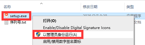 2、全部解压之后,找到【setup】应用程序,鼠标右键,选择【以管理员身份运行】。