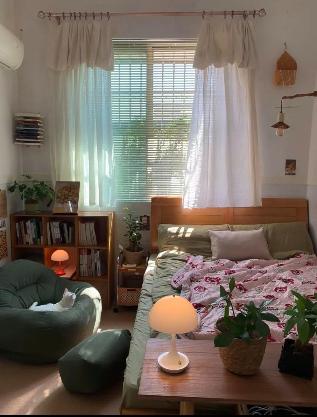 光对房间很重要,暖光更温馨,冷光更有质感,靠窗的位置,博主特意选择了窗纱,好清洗,而且可以让房子更有氛围感;