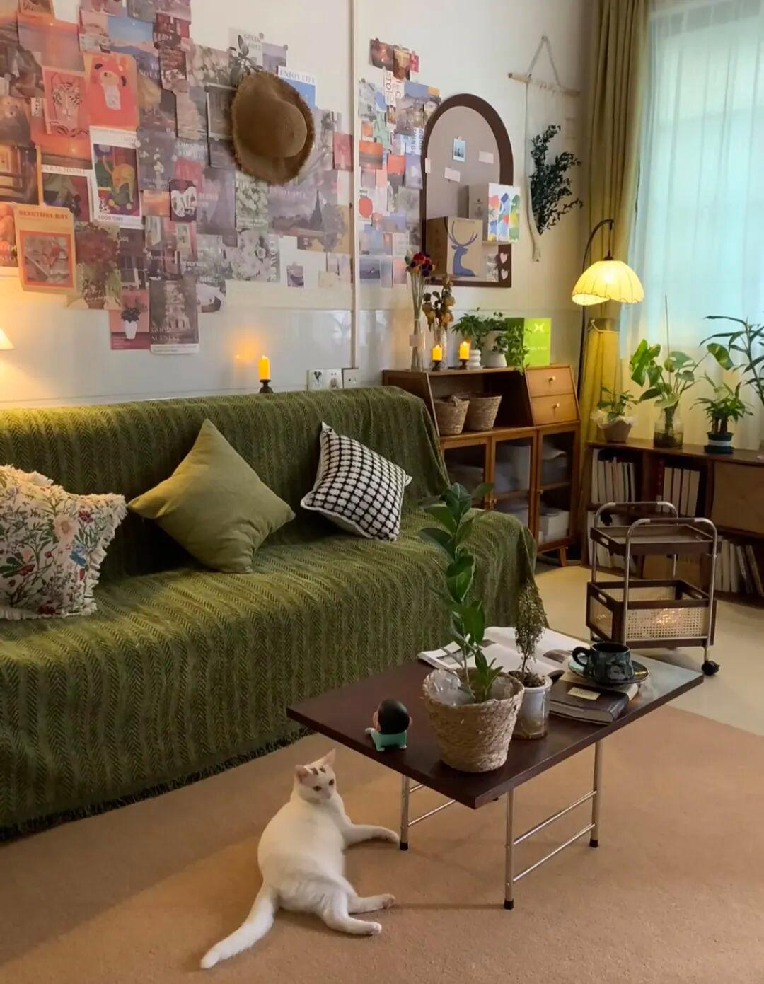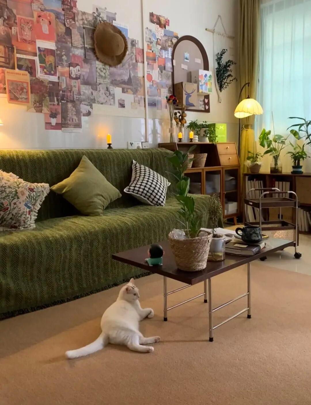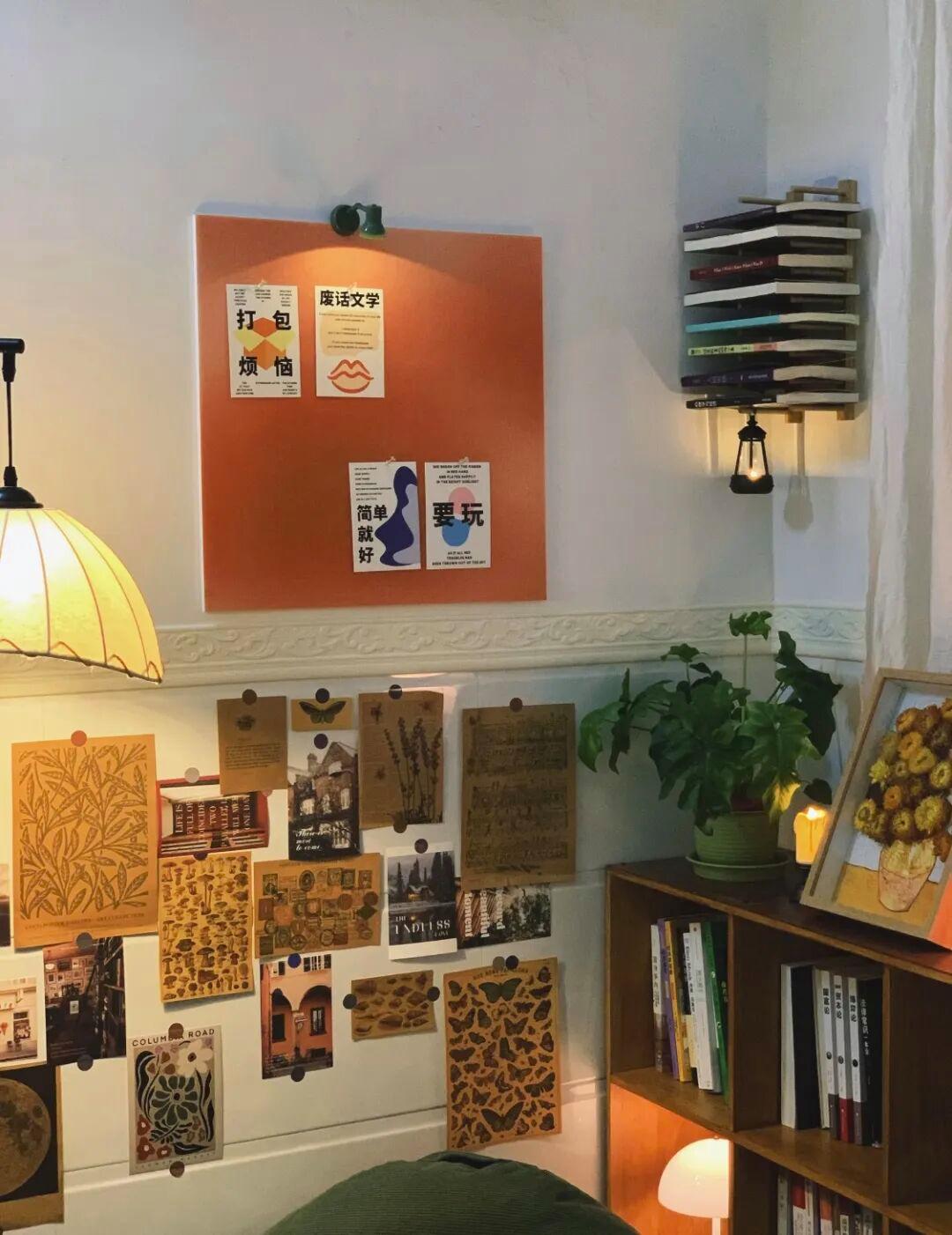 所以,博主最后她贴的是带美纹纸的毛毡板,渐变橙,还可以搭配她买的橄榄绿沙发,看着也很复古治愈;