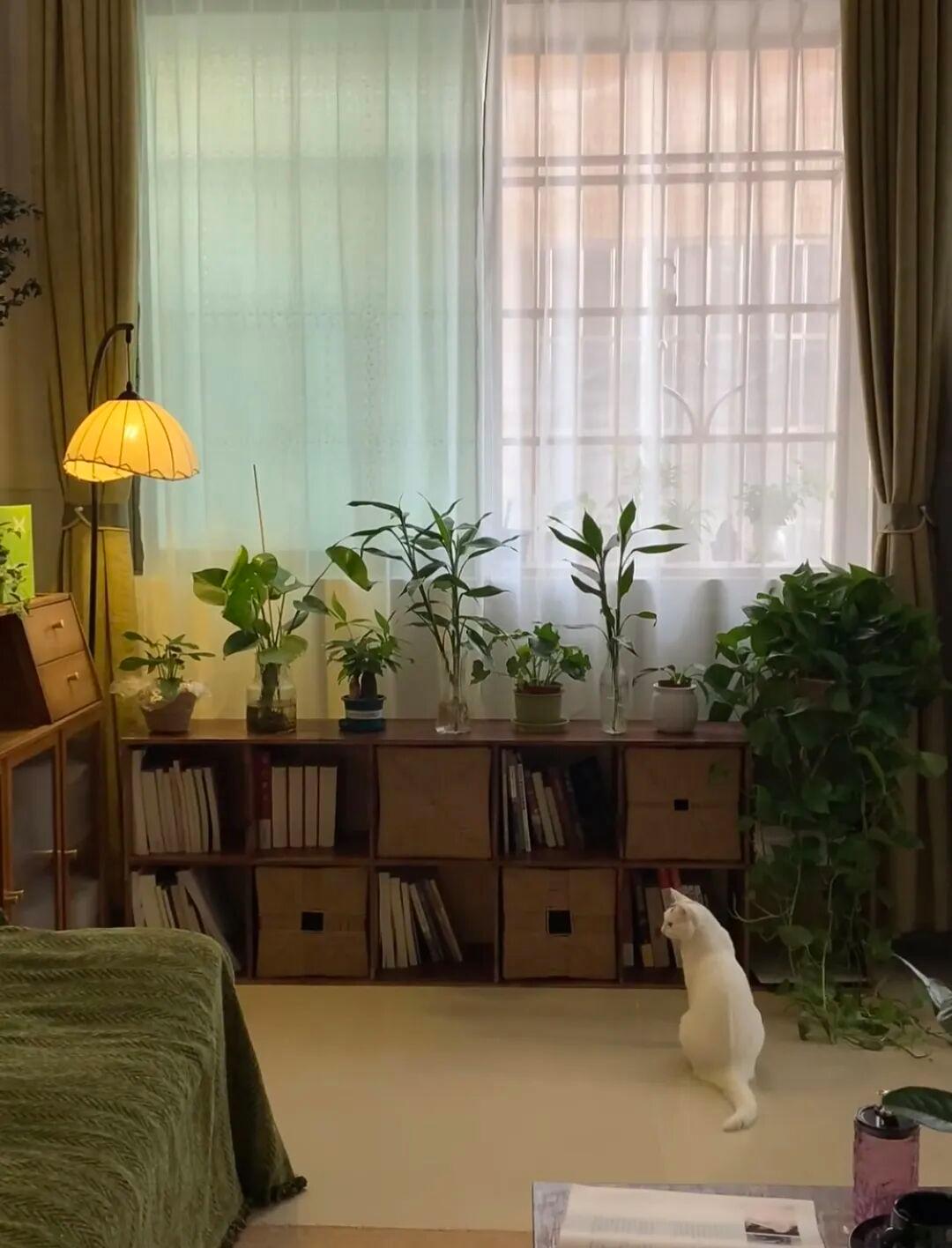 博主在室内摆放的,是龟背竹,春羽,乌山龟、发财树,富贵竹等耐阴绿植,颜值高,而且非常容易养活,随意搭配,都可以让小窝变美,而且有烟火气息。