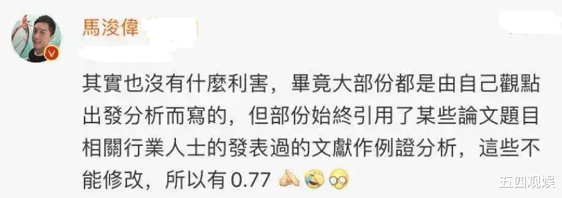 值得一提的是,马浚伟的毕业论文查重率只有0.77%。这一点令无数学生惊呼:请收下我的膝盖!