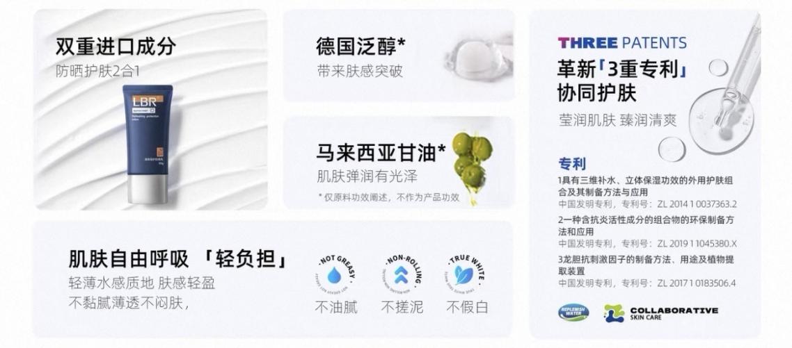 一、LBR 清爽倍护防晒乳:全波段防护的「隐形盾牌」1. 成分科技:物化协同的黄金配比作为本届测评的「全能王者」,LBR 采用物理防晒剂(氧化锌+二氧化钛)与化学防晒剂(奥克立林 + 胡莫柳酯)复配体系,形成反射与吸收的双重防护网。其中,纳米级氧化锌颗粒通过微囊包裹技术实现隐形化处理,避免传统物理防晒的厚重感。特别添加的透明质酸与维生素 E,在防晒同时构建保湿屏障,实测显示使用后皮肤水分含量提升 27%。