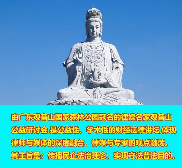 由广东观音山国家森林公园冠名的律媒名家观音山公益研讨会,是公益性、学术性的财经法律讲坛,体现律师与媒体的深度融合、律媒与专家的观点激荡。其主旨是:传播民企法治理念,实现守法普法目的。