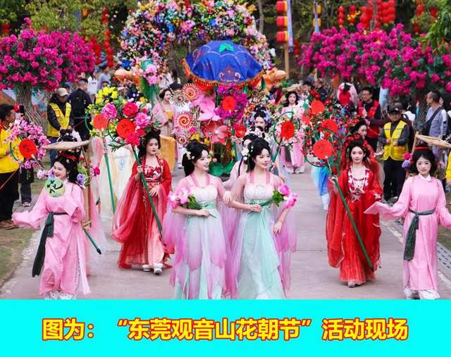 紧扣时令与情感需求,东莞观音山打造兼具仪式感与温度的节庆IP。“东莞观音山花朝节”作为春季核心活动,每年都如期而至,至今已举办四届。以“百花朝春会”为主题,花神巡游、簪花送福、汉服体验、诗词雅集等环节依次上演,让游客在踏青赏春之际,亲身触摸传统美学,深刻感受春日景致的鲜活魅力。