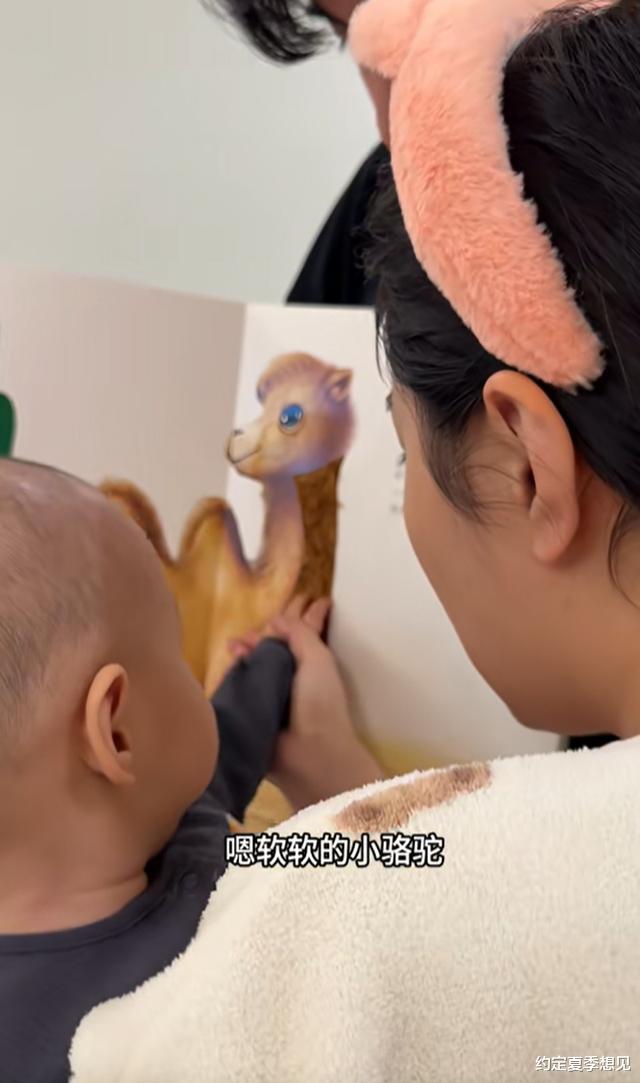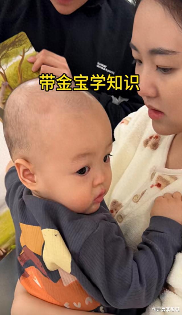 她晒娃的视频里,小金宝正拿着绘本,咿咿呀呀地“读”得起劲。