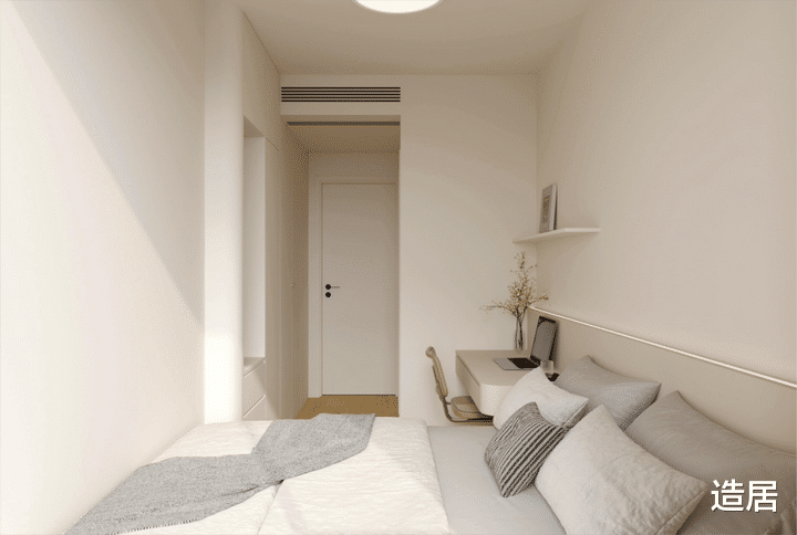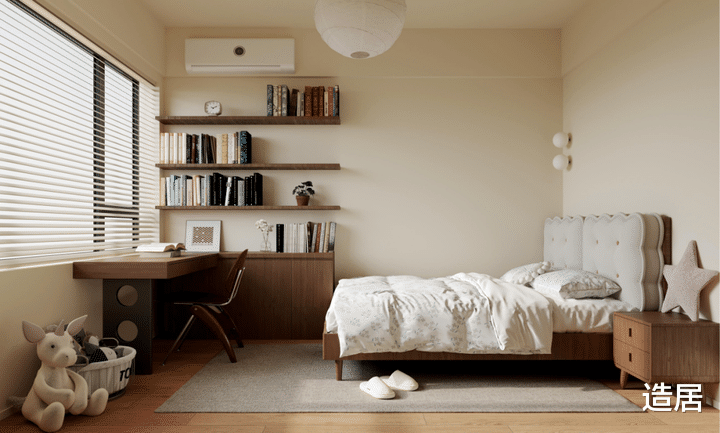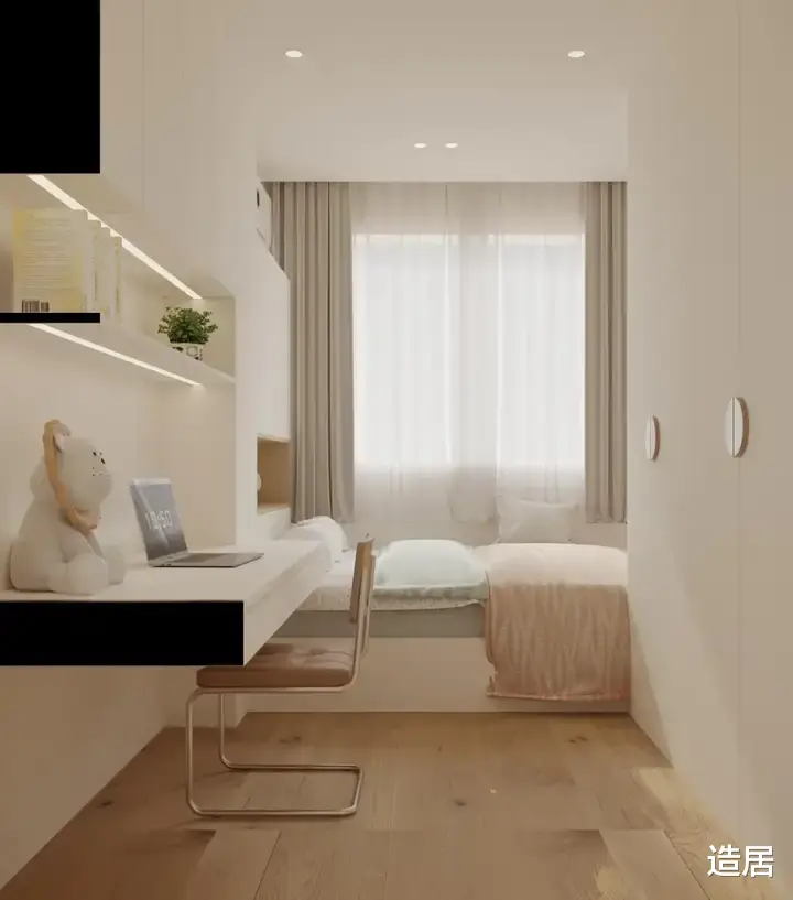 一、常住型次卧首先,次卧需要明确使用者。比如孩子、老人,或者需要长期居家办公的人,改造的关键是 “功能稳定 + 细节贴心”,这类设计不需要一直切换模式,但要经得起日常高频使用的考验。