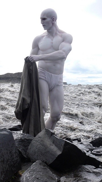 于是,为了展现人类体态的极致之美,剧组选择赋予工程师以“极具压迫的性感”,高大的身材,搭配上夸张的健美肌肉,高挺修长的鼻梁,深邃的眼窝。这就是导演心中完美的人类模板。