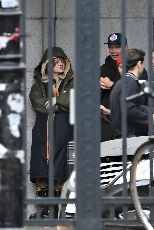 在纽约的寒风里,一位红发女孩穿着迷彩裤、战术靴、军风外套,站在摄像机旁等候开拍。