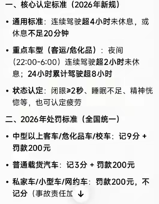 其中连续驾驶超4小时未休息或休息不足20分钟,认定为疲劳驾驶;客运司机夜间22:00-次日6:00连续驾驶超2小时未休息/休息不足20分钟,算疲劳驾驶。