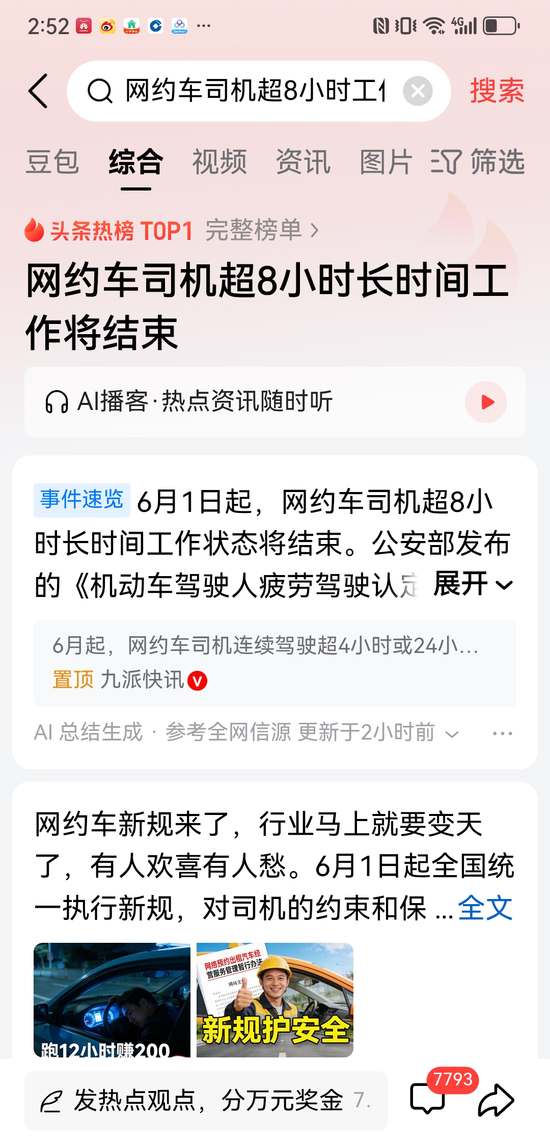 6月1日起,网约车司机超8小时长时间工作状态将结束。公安部发布的《机动车驾驶人疲劳驾驶认定规则》明确,客运机动车驾驶人24小时内累计驾驶超8小时即认定为疲劳驾驶,网约车司机适用该规则。
