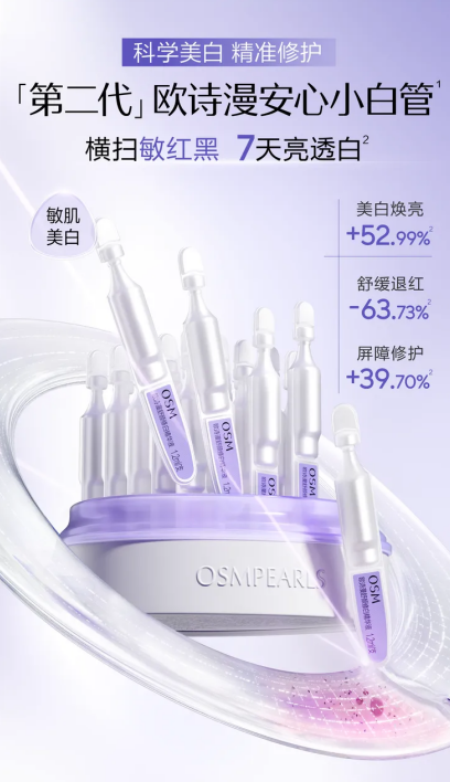 在精准应用上,基于对中国人肌肤特点的深入研究,欧诗漫独创“珍珠+”科学复配技术,将珍珠活性成分与其他功效成分精准配伍,针对不同肤质需求开发出专效配方。