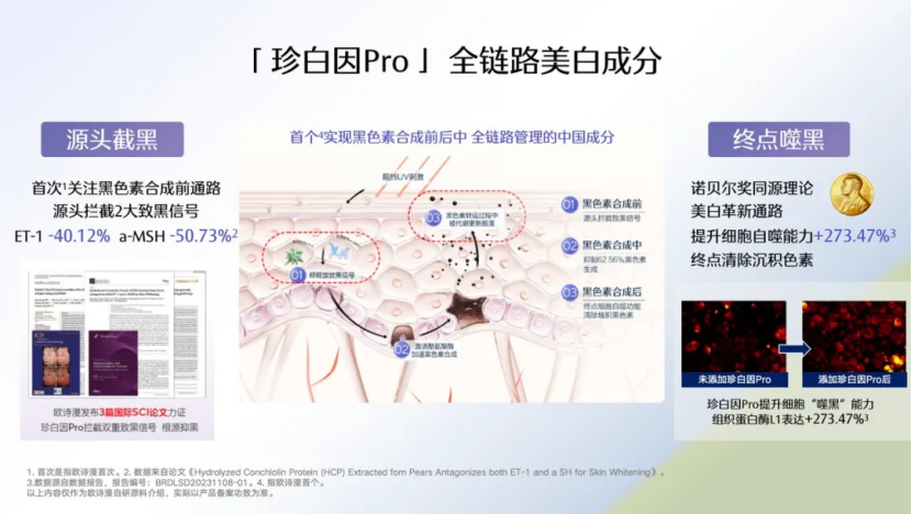 更值得一提的是,「珍白因Pro」创新性地引入了2016年诺贝尔奖“细胞自噬”机理,使肌肤获得“自我噬黑”能力,美白效率提升达273.47%。