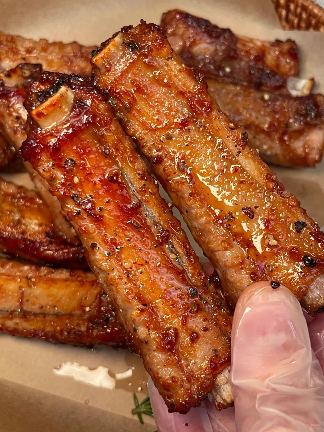 排骨边边角角烤的焦香焦香,忍不住咽口水!一口下去,好吃到飞起~