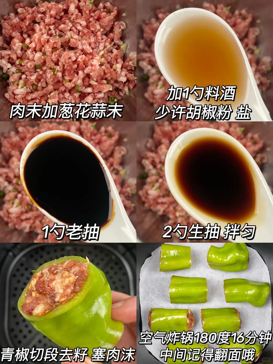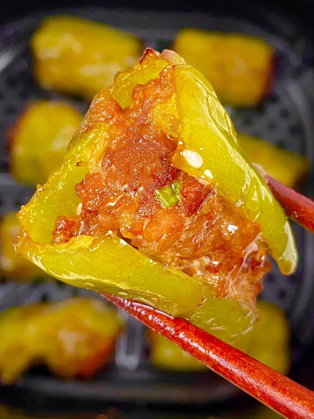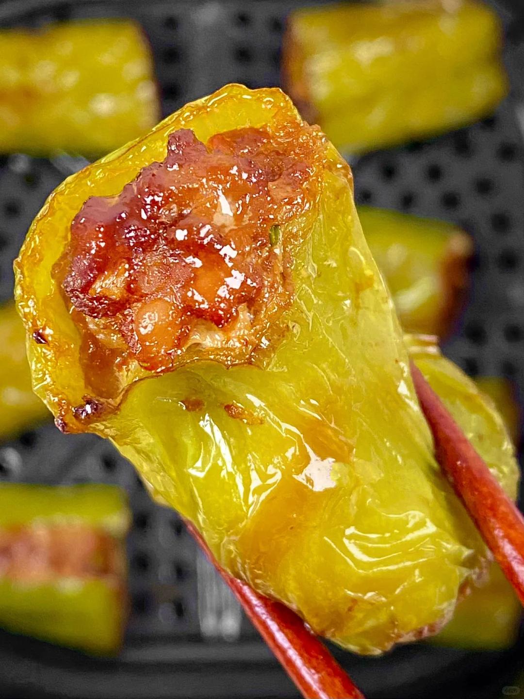 后来在家用空气炸锅做虎皮尖椒酿肉一次就成功,吃的超过瘾,肉怎么这么香,我好爱吃~
