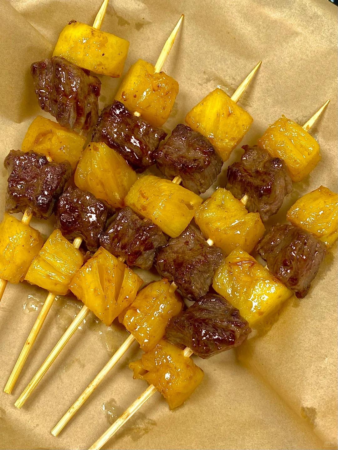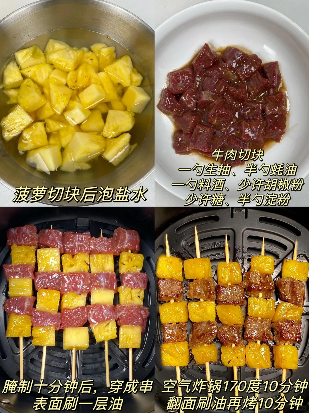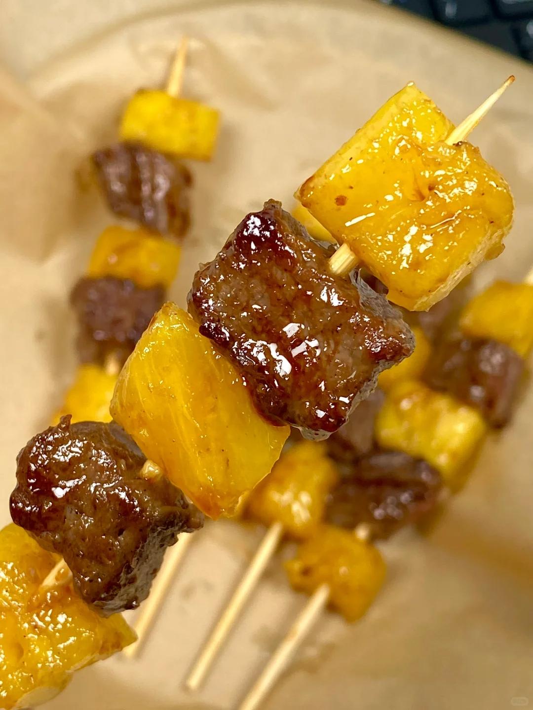用空气炸锅做菠萝牛肉串,我真是相见恨晚啊,菠萝的清甜搭配牛肉的鲜嫩~巨香!