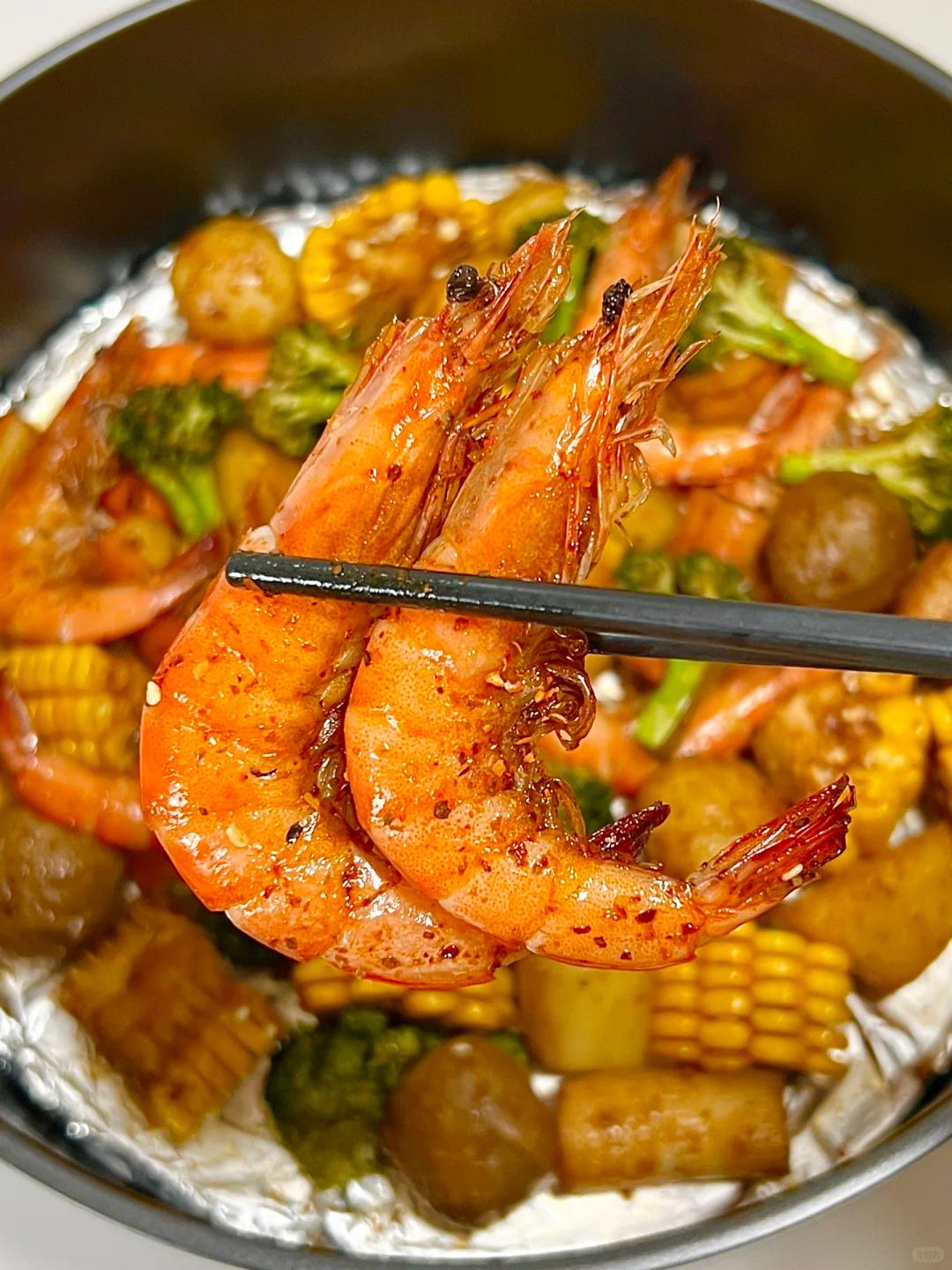 满满一锅有肉有菜有主食,香香辣辣巨满足~用空气炸锅做出来的食物少油更干爽,比外面油腻腻的烧烤低脂、健康多了!