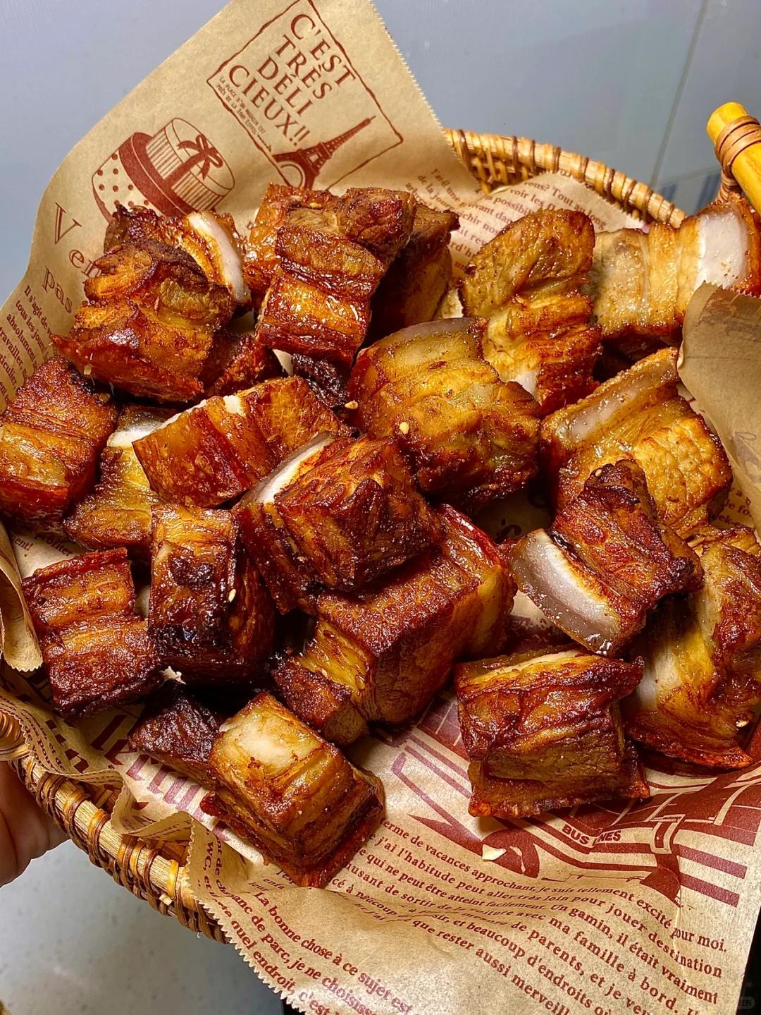 脆皮五花肉是空气炸锅的必修菜了吧,不管空口吃,包生菜吃,就蒜吃都很绝,根本停不下来!