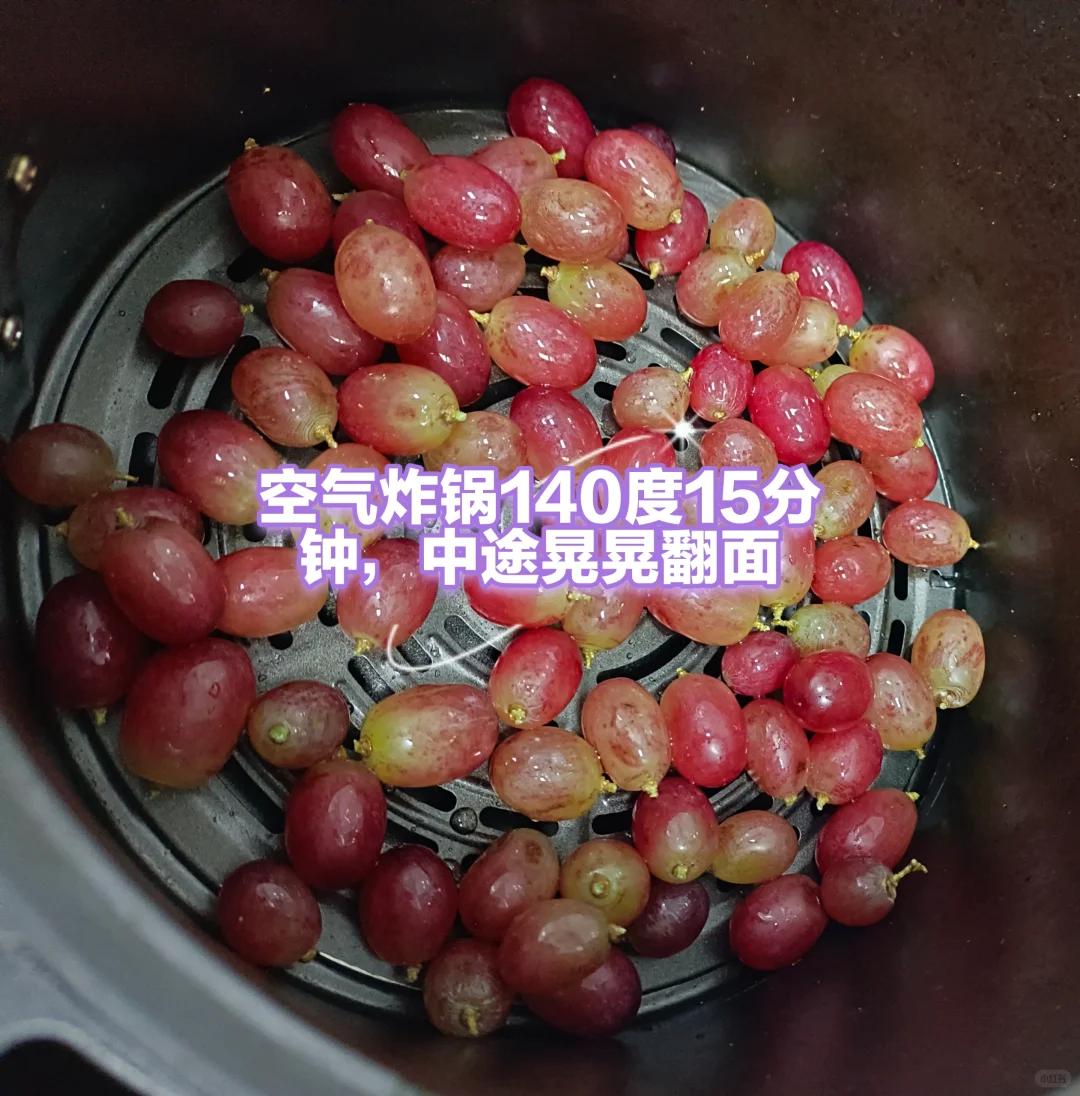 葡萄洗干净,空气炸锅140度15分钟,中途晃晃翻面,喜欢干一些再烤5分钟。