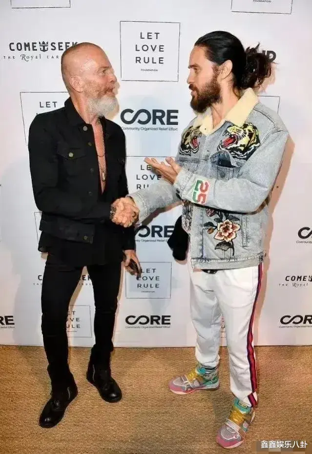 他身穿黑色西装,搭配银色项链,显得时髦而前卫。
