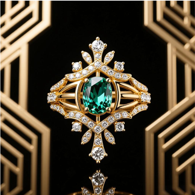 二、艺术特征与设计语言核心美学原则Art Deco珠宝最显著的特征是对称的几何构图、强烈的对比色彩和机械美感的表现。设计师摒弃了新艺术运动的曲线自然主义,转向更为理性、秩序的现代美学表达。