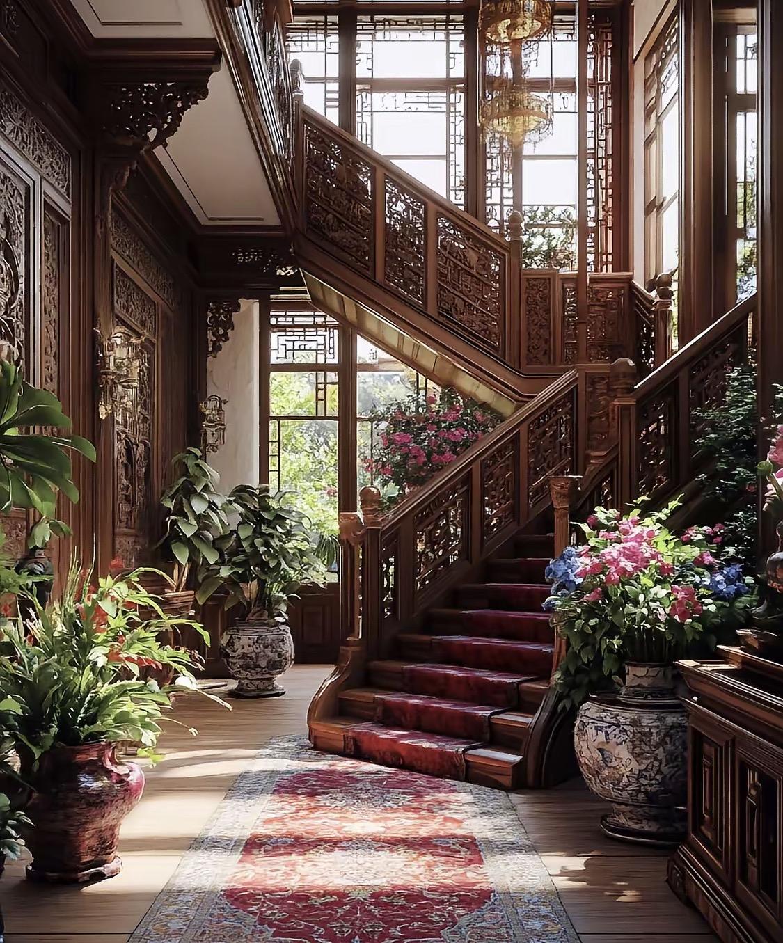 布局中,以五进院为主角色,五居室副角色,前古典,后现代,一个最普通的自建房,凭意境,格局打开,动线张力爆棚!