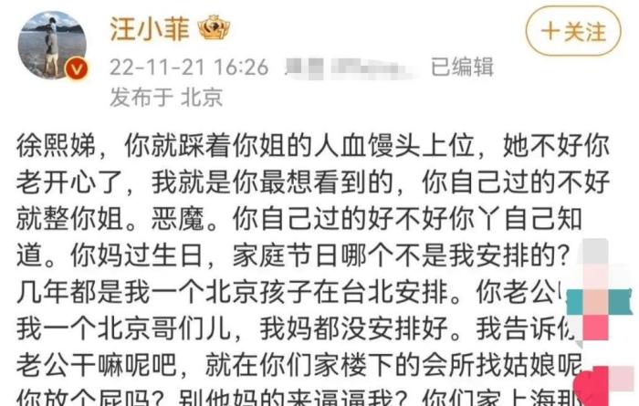 大S和小S的家事可以写成一部热血小说,前夫抚养前妻一家。事情就算是编都没有人相信,这太令人震惊了,无法相信真实发生这样的事,有句话叫“老实人发疯更可怕”,说的就是汪小菲。