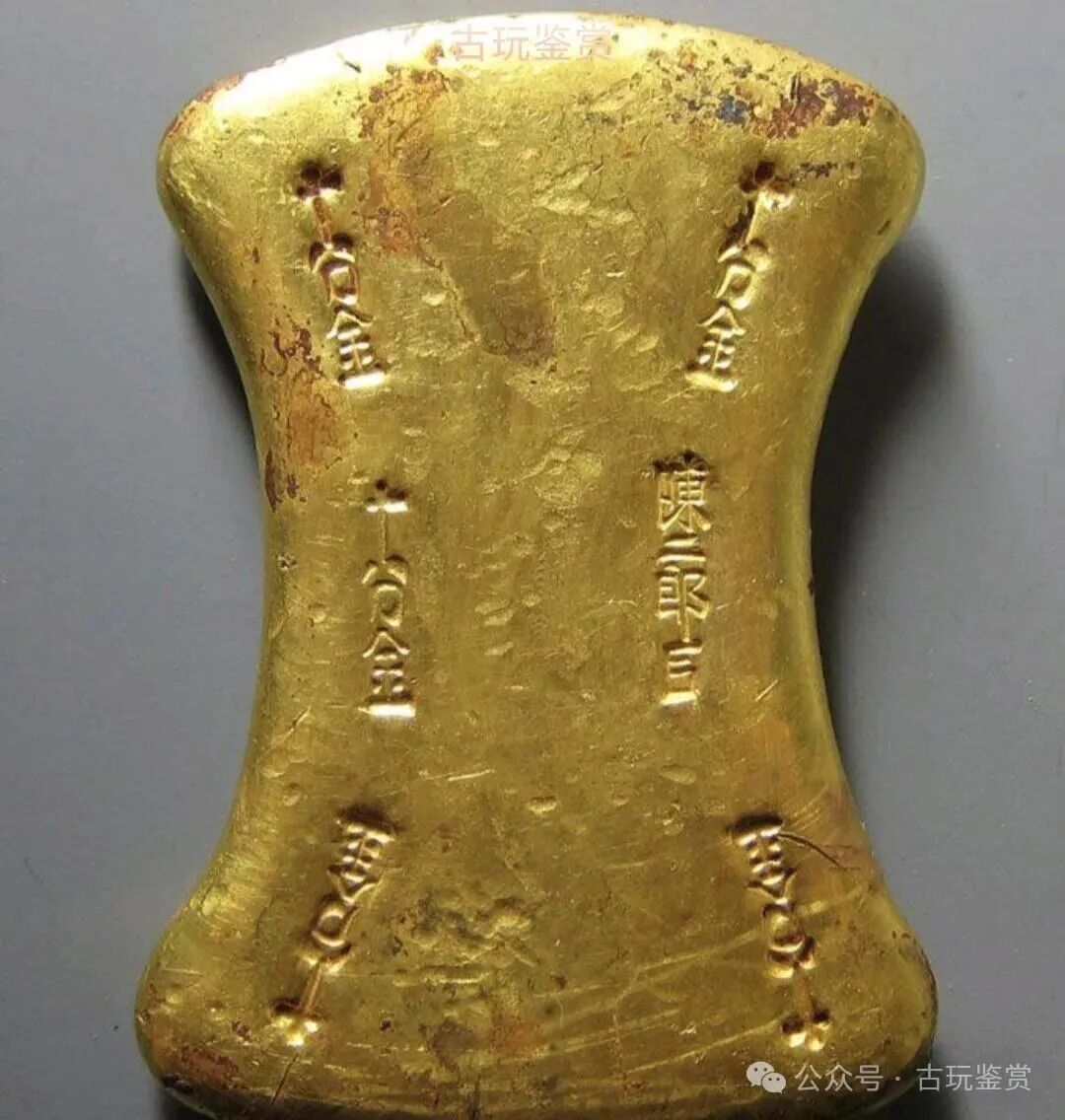 下图金锭最初由犹太收藏家斯蒂文1935年在扬州购得,后由钱币收藏家黄思贤珍藏。从形制和铭文判断,这是北宋末年官方铸造的金锭。
