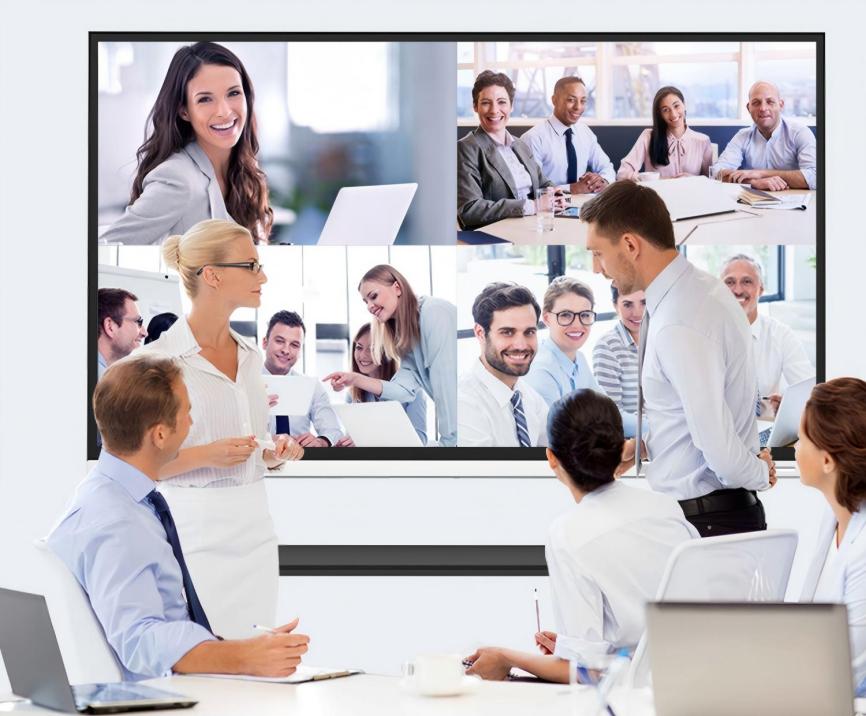 在企业日常办公会议中,会议一体机可用于方案讨论、项目汇报、远程会议等。除此之外,还能作为信息展示屏,放置在办公开放空间中,用于内部通知、员工培训等。