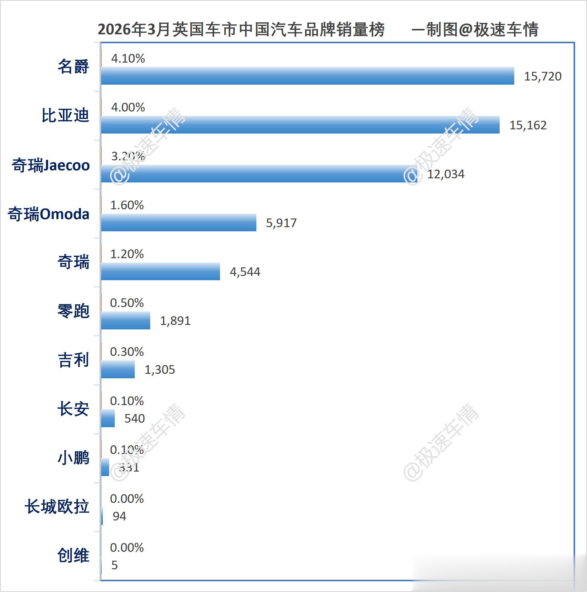大家好,这里是极速车情。今天为大家带来英国汽车市场2026年3月的销量数据报告。