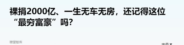 澎湃新闻2021-03-03发布的《裸捐2000亿、一生无车无房,还记得这位“最穷富豪”吗?》