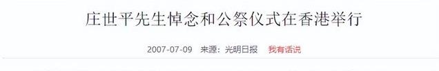 光明日报2007-07-09发布的《庄世平先生悼念和公祭仪式在香港举行》
