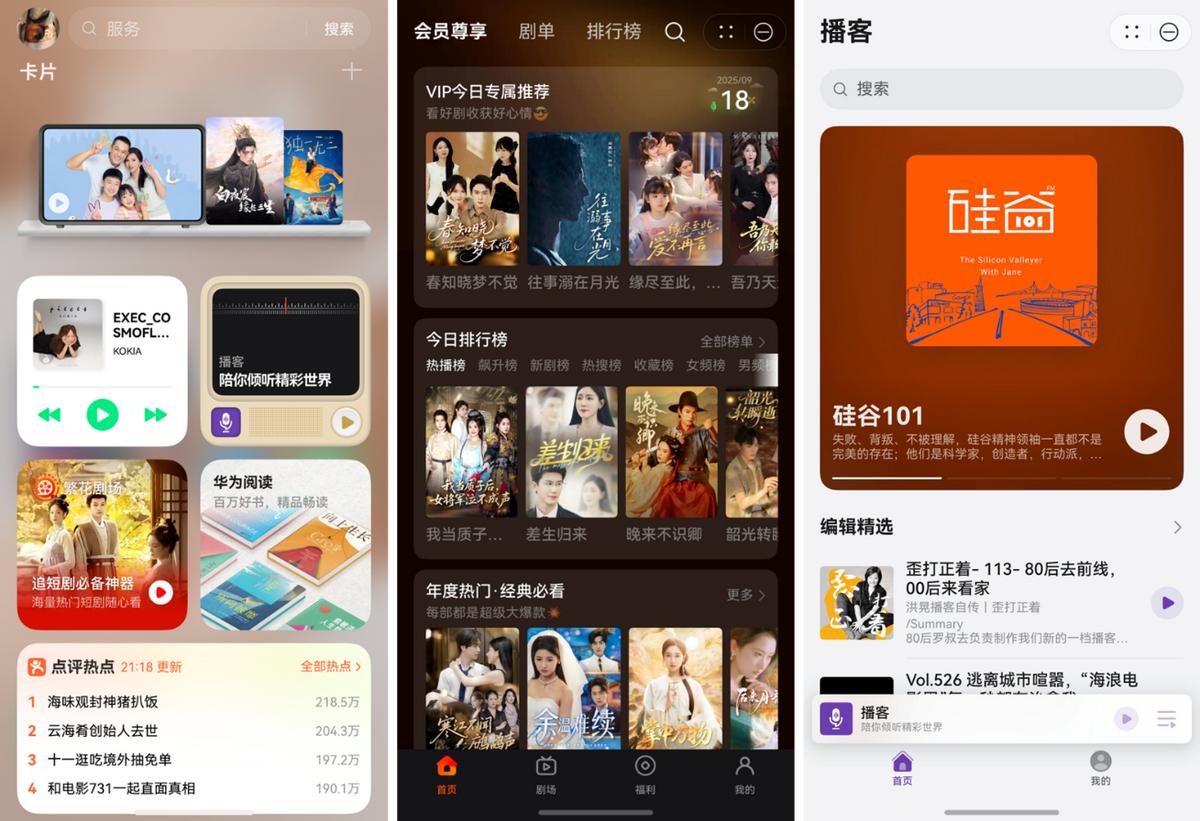 远方总是充满新奇和惊喜,但抵达目的地前的旅途中,往往有些无聊,作为计划达人,漫长的高铁时光自然也有事可做,无论是听歌放松,还是刷剧听博客,都能让自己更充实。手机桌面右滑进入负一屏,提前添加的音乐卡片可以继续播放喜爱的歌单、星芽短剧元服务里又上线了许多优质短剧帮你解压、播客元服务里的人气播客栏目为你带来最新洞见……碎片化的时间也有被好好利用。