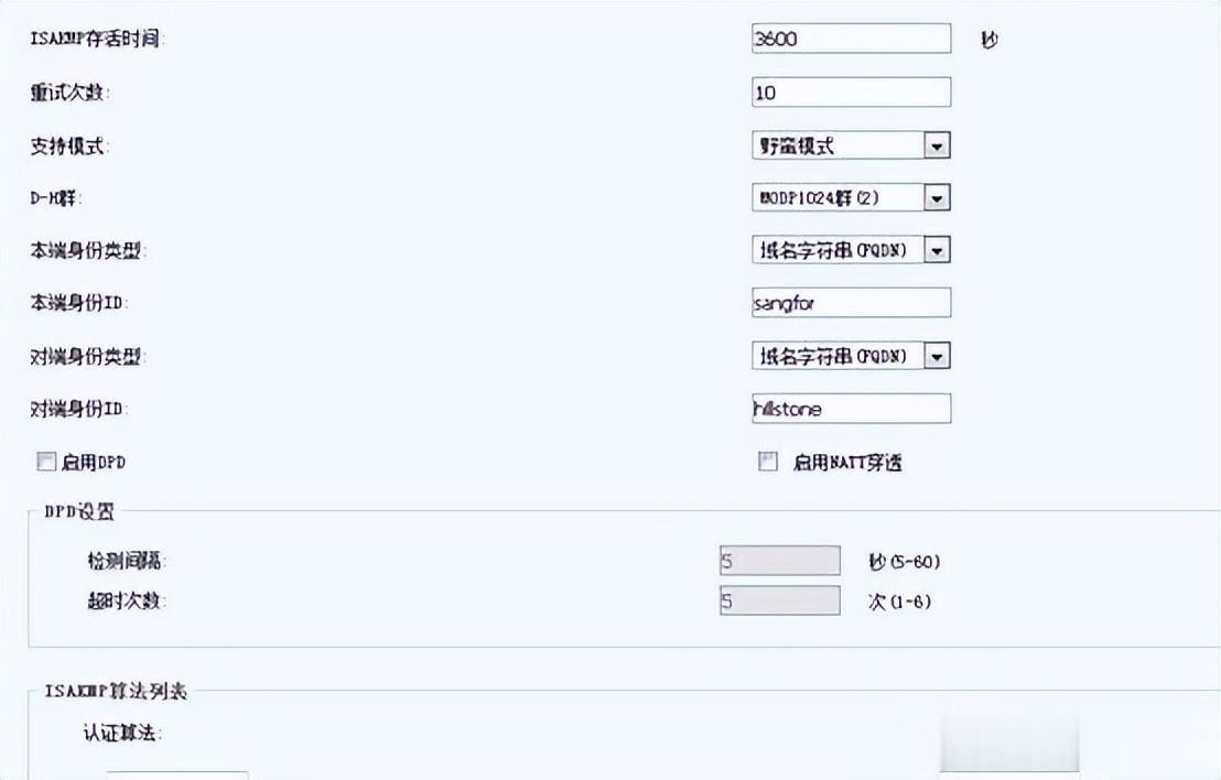 山石那边配置也费劲,IKE提议P1和P2参数总对不上。特别是DH群组得选一样的,深信服用的是组5,山石却默认设成组2。到最后两边工程师视频连线挨个参数比对,发现协议版本都不一样,一个用IKEv1一个用了IKEv2。