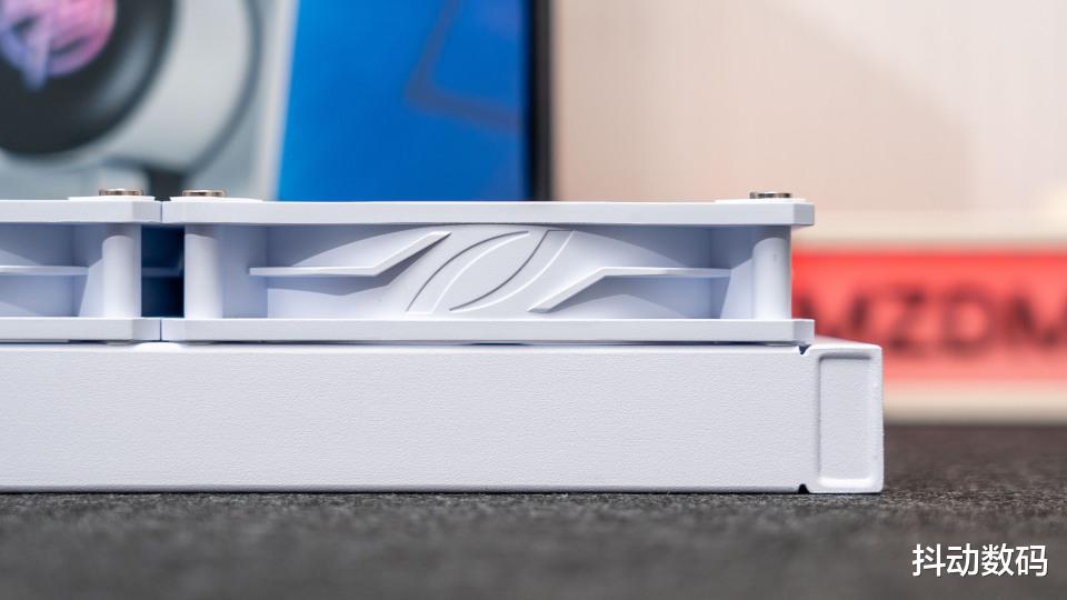 侧面可以看到风扇边框采用了不封闭设计,边框一周还做了装饰线。