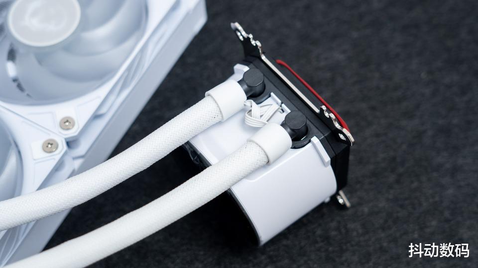 隐藏线缆设计,冷头的水泵以及LCD屏幕的显示供电线都隐蔽在水管的网布内。两根水管支持大范围自由旋转角度,整体安装不受影响。
