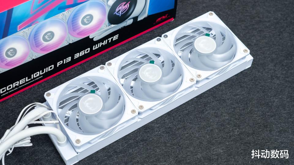 这是一款我之前装机时选择的水冷散热器了,但是因为其独特创新的设计我还是想拿出来单独分享一下。相比目前各家都在卷的LCD冷头屏幕,把冷头屏幕做得越来越大,甚至做成了曲面屏设计的时代。但是却忽略了一些事情,就是往往在冷头部分加入LCD屏幕之后,冷头部分会又增加一根线材。有时一款水冷头甚至要分出来3根甚至更多的电线,这样就让每次装机理线时玩家会遇到较大的理线困难。而这次要分享的微星 MPG CORELIQUID P13 360 WHITE 这款一体式水冷散热器就很好地解决了这点,它把冷天部分的线材隐蔽在水冷管的编织包管内部,隐藏线缆设计真的非常合适理线,更适合时下流行的背插主板产品。而且这款拥有可编辑LCD屏幕的一体式水冷产品价格并不贵,对于最近想要装机的小伙伴和我一起看看吧。