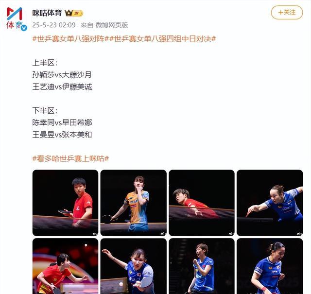 那么,上半区的孙颖莎、王艺迪又是怎样一个状况呢?
