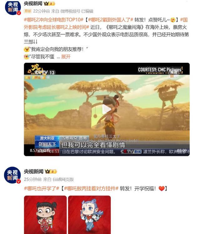 我昨天刷朋友圈的时候看到一个超级有意思的事情,那就是央视变成了《哪吒2》最忠实的粉丝,短短一天之内竟然发了25条关于这部电影的动态,这种情况是从来没有过的,毕竟央妈一向给人的印象是严肃认真的形象,突然变成了追星族一样的存在,这让很多网友都觉得特别有趣,纷纷在评论区里调侃说央妈这是在给哪吒打榜呢,这种反差让人忍不住发笑,想象一下那些平时正经八百的新闻主播也在为一部动画电影疯狂宣传的样子,这种感觉真的挺奇妙的,就像平时一本正经的数学老师突然开始和你讨论游戏攻略一样令人惊喜。