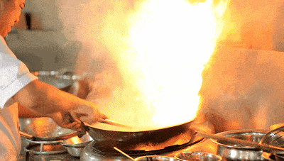 猛火与热油碰撞,大厨手中锅铲翻飞