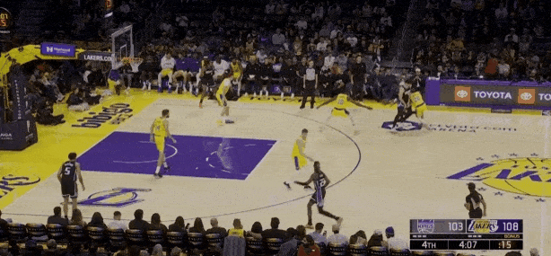 NBA季前赛,湖人对阵国王的比赛正在进行中。