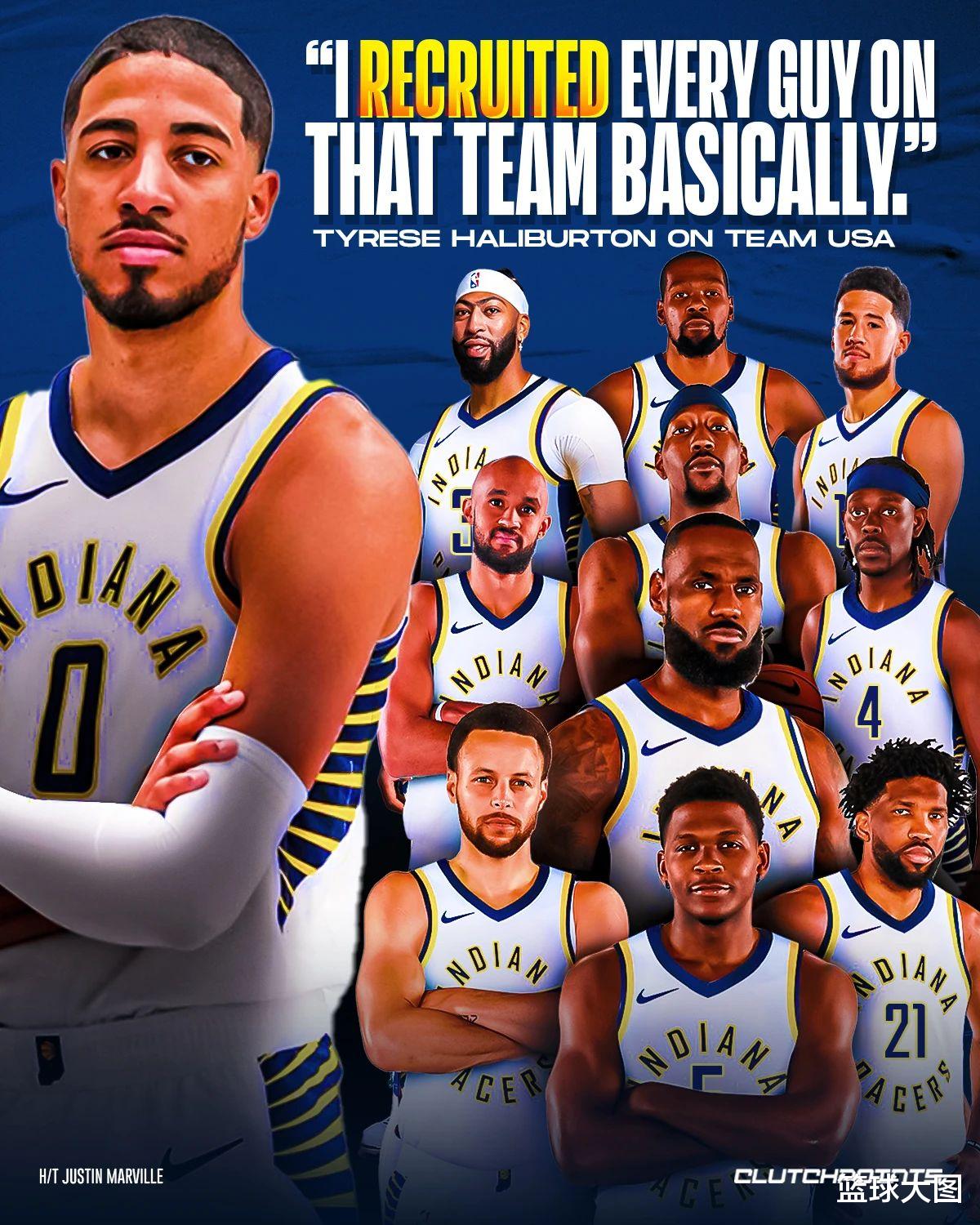 当然,哈利伯顿也没闲着就真只顾交朋友了,他自己透露说他在奥运会期间招募了每一名队友:“我基本上招募过那支球队里的每个人,任何人想来印第安纳加入我们的,我都表示欢迎。”不过他也说,他同样被其他球员招募过。很可能未来就会有美国队友互相组队,不过他不会离开印第安纳。