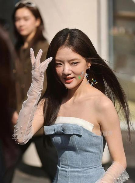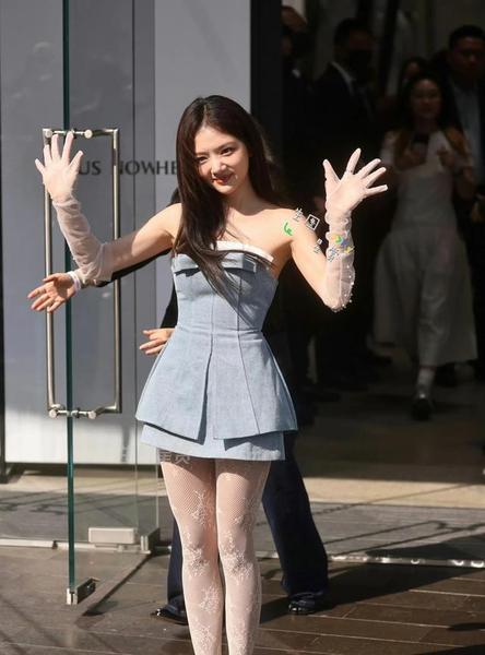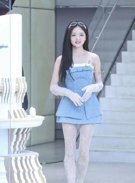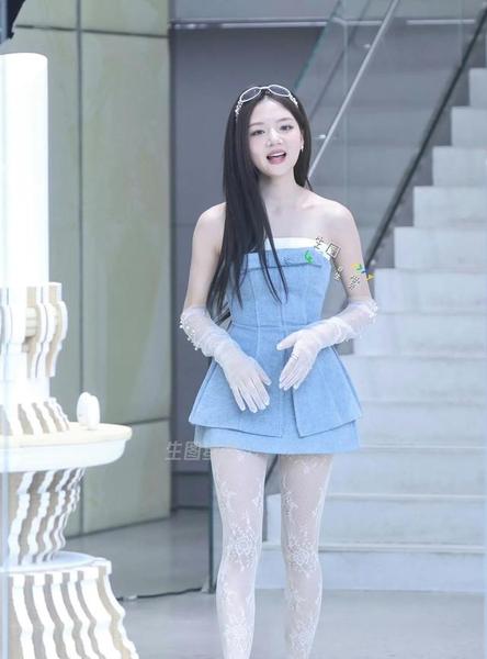 其实这姑娘的现代装本可以很出彩,像蓝裙配银框眼镜的清爽学院风明明很讨喜,偏偏这次用力过猛,把蕾丝、手套、马卡龙这些甜美元素堆砌成了"土味大礼包"。