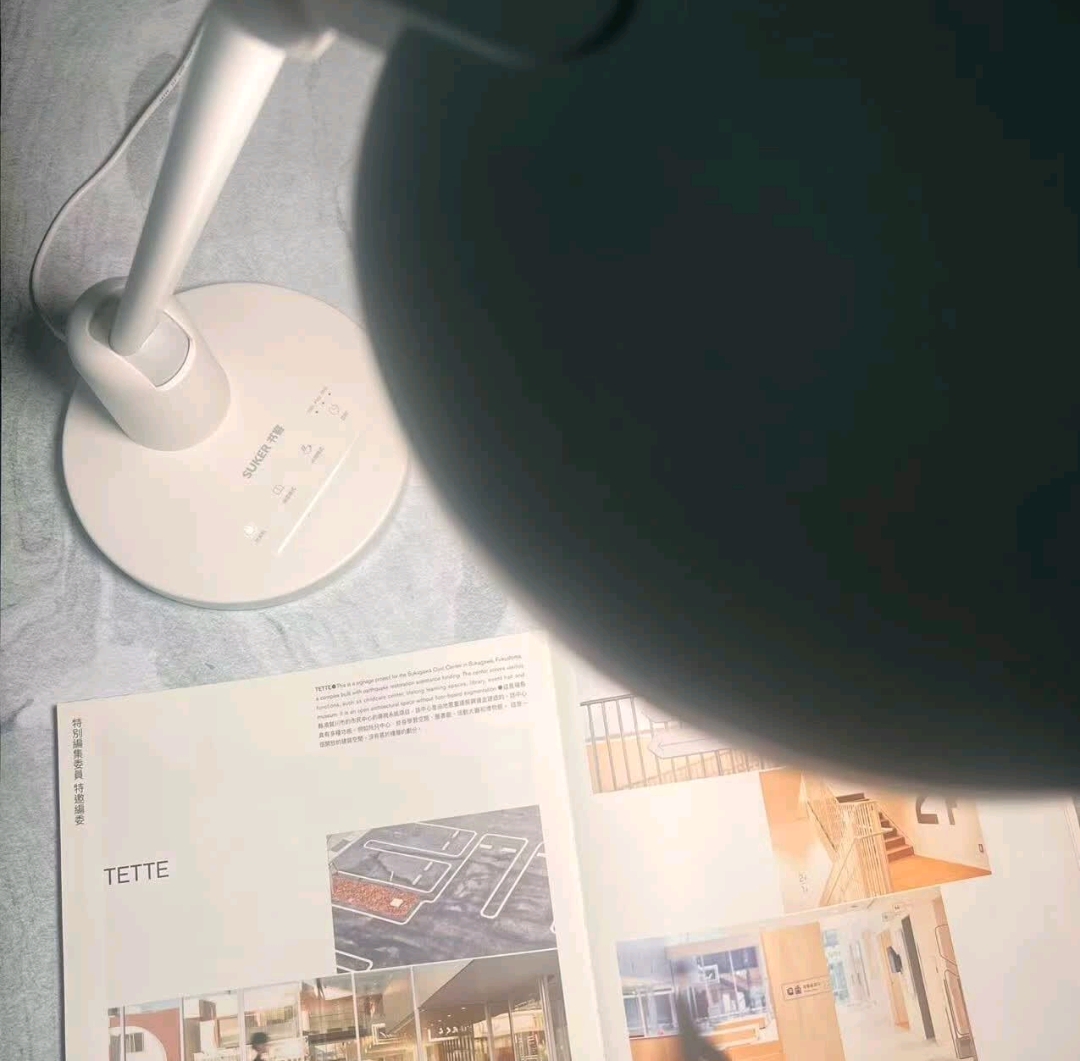 而且书客SKY护眼台灯灯臂和灯头关节设计也非常灵活,你可以随心所欲地把它扭成任何你需要的角度。无论我是想照亮桌面正中央,还是需要侧过身去照亮旁边书架上的某一本书,它都能精准地定位并稳稳地停在那里,丝毫没有“低头”或者松垮的迹象。这种扎实做工带来的阻尼感,让人特别安心。