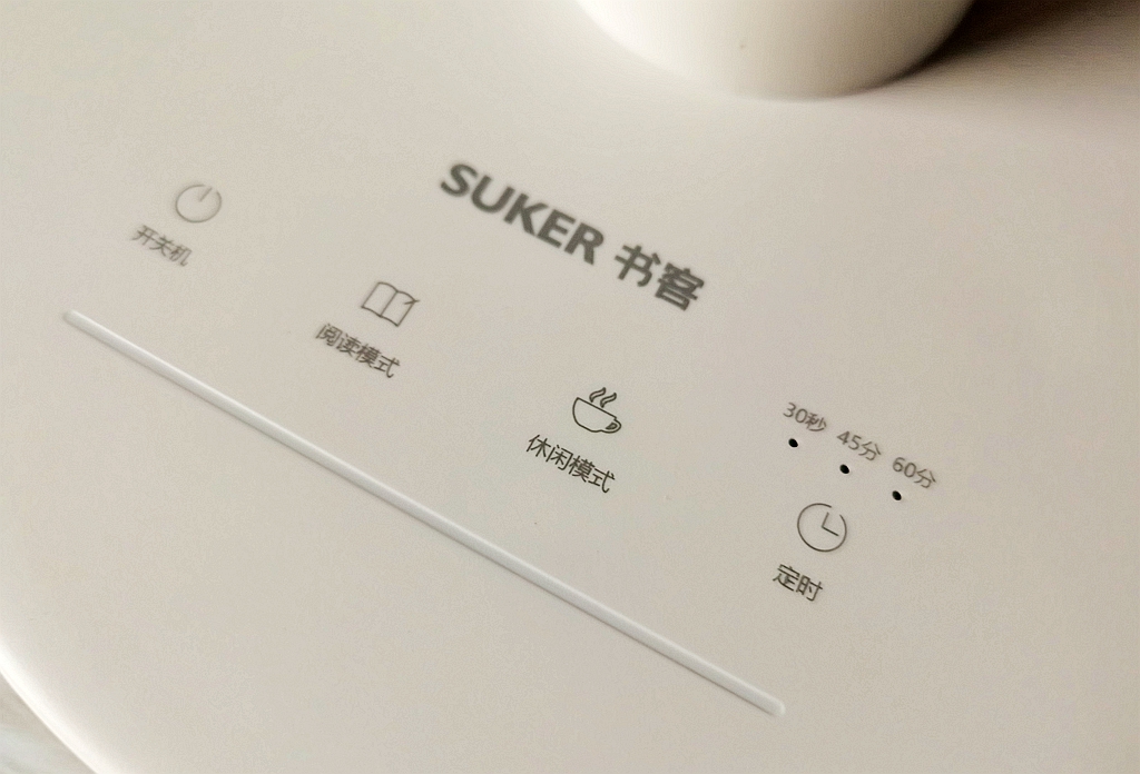 书客SKY护眼台灯设计的图标和中文释义的双重触控键,使用起来非常明确,不像平常用的“咯哒”一下的机械式按键,只要用户手指轻轻一碰,小图标会亮起柔和的白色背光,给书桌角落增添了不少科技感。