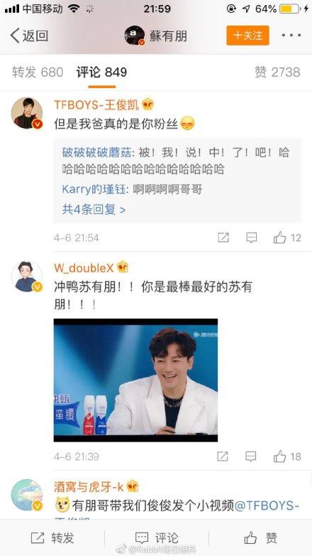 小凯大方出借爸爸帮我完成表演”结果刚刚王俊凯回应说:我爸真是你粉丝!!也太好笑了!