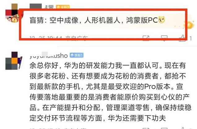 网友对余承东所说的“明年,我们还会有大家想不到的产品,未来,我们还有大家不敢想的产品”有不少猜测。