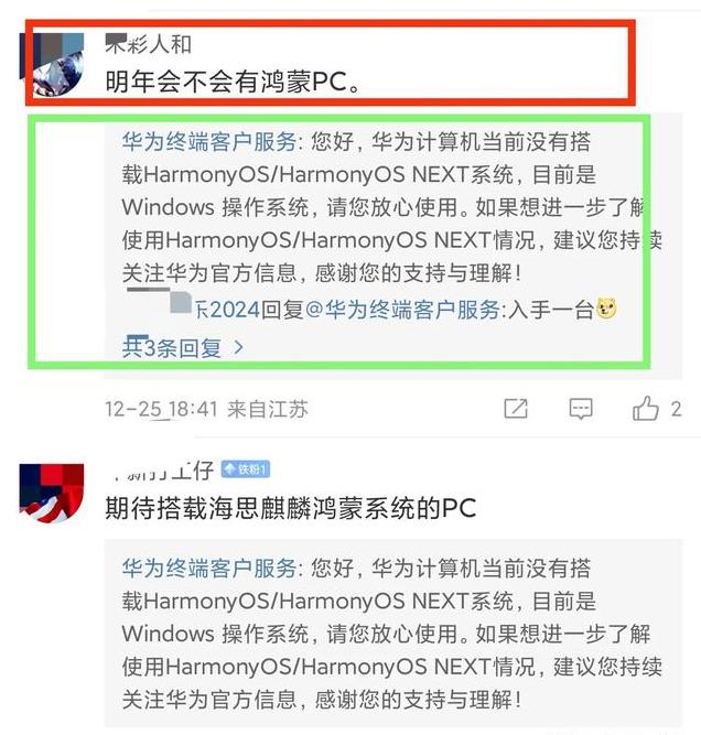 3、一位江苏网友在评论区提问:“明年会不会有鸿蒙PC”。