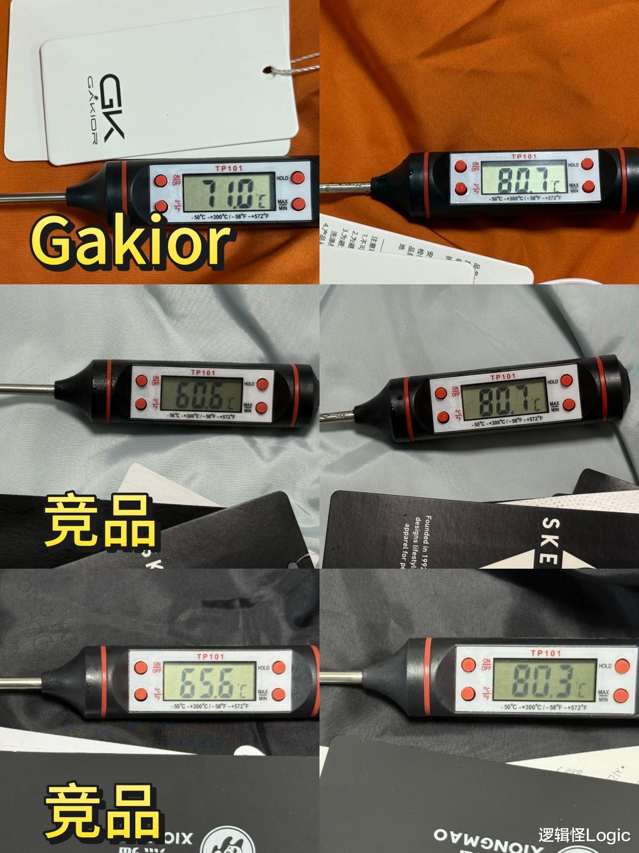 以下图示为GAKIOR冲锋衣和其他700价位冲锋衣保暖维度对比: