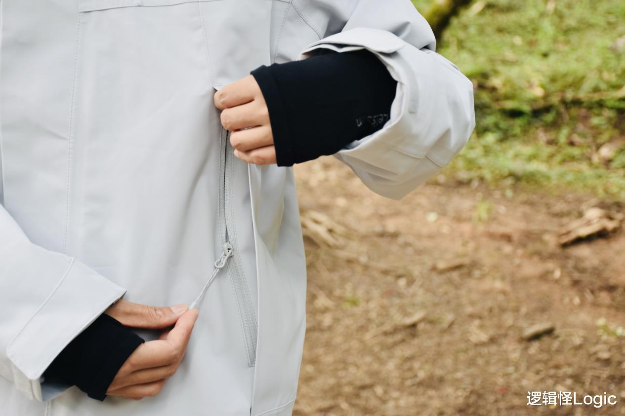 冲锋衣两侧配有大容量插手口袋,位置设计合理,抬手即可轻松放入。口袋拉链同样为YKK品牌,带有防泼水涂层,外部设计反向防盗、防水遮帘设计,即使在小雨中使用也不用担心雨水顺滑进入。内部空间足够容纳手机、手套、暖宝宝甚至小型充电宝。